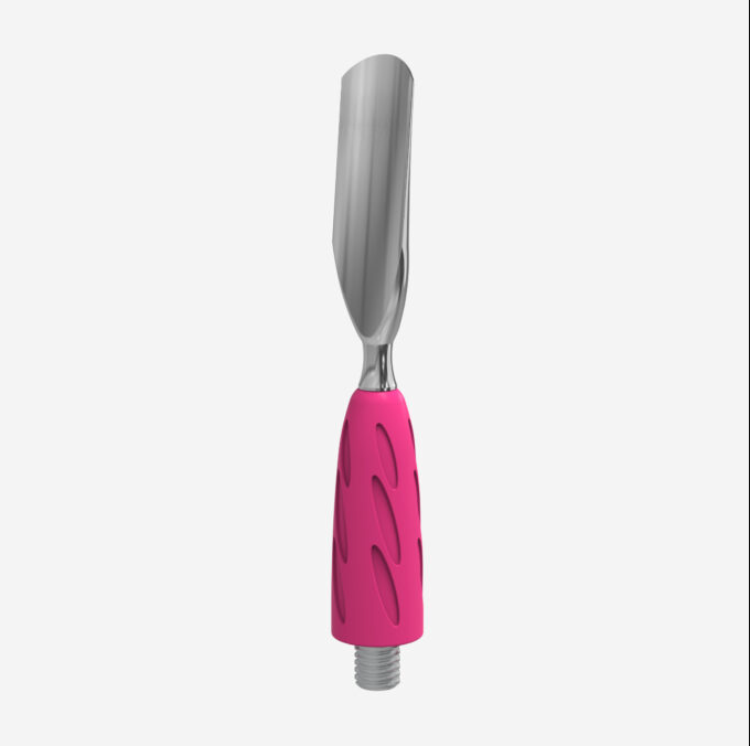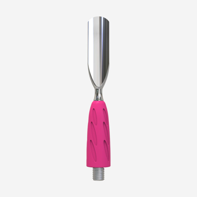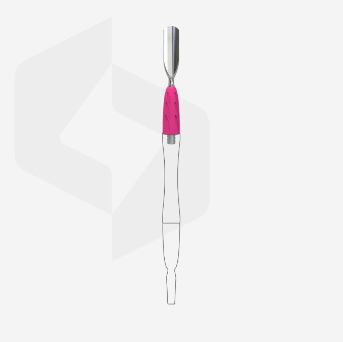 "Rounded wide pusher" er en utskiftbar del av COMBO UNIQ – et verktøy du skreddersyr selv. Den buede, brede formen følger neglen og gjør det enkelt å skyve tilbake neglebånd. Laget i rustfritt stål med godt grep i hypoallergen silikon. Tåler desinfisering og sterilisering uten å miste kvalitet.