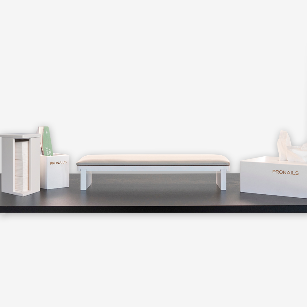 Et stilrent sett i elegant trelook som kombinerer funksjon og design. Inkluderer Hand Cushion, Brush Box, Tissue Box og Wipe Box – alt du trenger for en ryddig, profesjonell og innbydende arbeidsplass.
